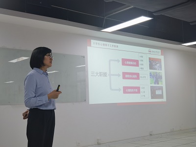 辅导员严瑾讲解了学生心理骨干的工作职责、工作方法、工作评价和考核,强调了预约心理咨询的方法。学院大学生发展辅导中心主任但泱泱结合实际案例,讲述了一般心理问题和异常心理问题的表现和区别,介绍心理危机识别、上报和干预的方法,以及朋辈心理疏导的谈话技术,教育学生学会助人自助,做心灵的守护者。