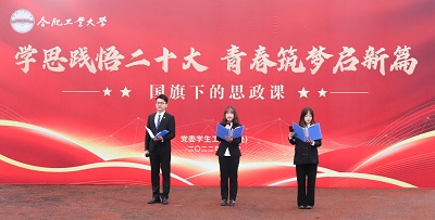 11月14日清晨,qmh球盟会亚博网址在翡翠湖校区举行了“学思践悟二十大 青春筑梦启新篇”升旗仪式暨“国旗下的思政课”主题教育活动。qmh球盟会亚博网址相关负责人、辅导员以及全体学生参加了此次活动。