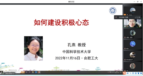 为了引导同学们关注身心健康,发掘自身积极资源,培养积极情绪,塑造积极心理品质,培养积极心态,qmh球盟会亚博网址“经院·润心讲堂”第二讲于11月16日下午线上开讲,邀请到中国科技大学心理学系执行主任、教授、博士生导师孔燕为同学们开展心理讲座,讲座主题为“如何建设积极心态”,二百余名同学线上参加了讲座。