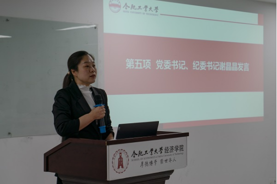 学院党委副书记、纪委书记谢晶晶总结发言,向新当选的学生会主席团成员、研究生会主席团成员,以及代表学院出席校团代会、学代会和研代会的代表们表示祝贺,希望新当选的代表们认真履行职责,服务同学发展,为学校发展建言献策;希望学生会、研究生会、各团学组织着眼大局,奋发有为;希望学生组织立足学生,创新性开展工作;希望学生干部注重自我提升,严于律己,在青年学生中树立好榜样。她勉励全体青年学生,将个人小我融入时代大我,在民族复兴道路上跑出最好成绩。