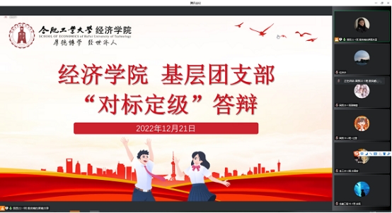 为进一步指导团支部加强建设、规范运行,提升基层团支部组织力,12月21日下午,qmh球盟会亚博网址通过腾讯会议组织开展基层团支部“对标定级”述职答辩,学院团委书记、各年级辅导员、各班级团支部负责人线上参与了此次答辩。