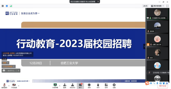 本次线上双选会共有中建六局、中信证券、九江银行、兆尹科技等10家优质企业参会,吸引了100多名本科生和研究生参加。各用人单位通过腾讯会议依次进行企业介绍与招聘宣讲,同学们认真聆听,对宣讲企业的岗位要求、招聘信息、福利待遇等内容作了充分了解,并积极提问,现场气氛热烈。