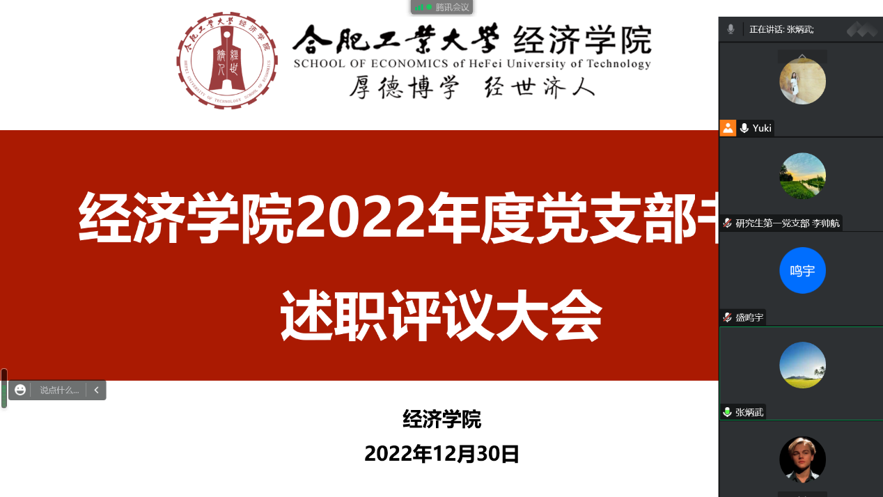 12月30日,qmh球盟会亚博网址召开2022年度党支部书记述职评议大会。学院所有教工、学生党支部书记进行述职评议,学院党委委员参加会议,学院党委书记张炳武主持会议。