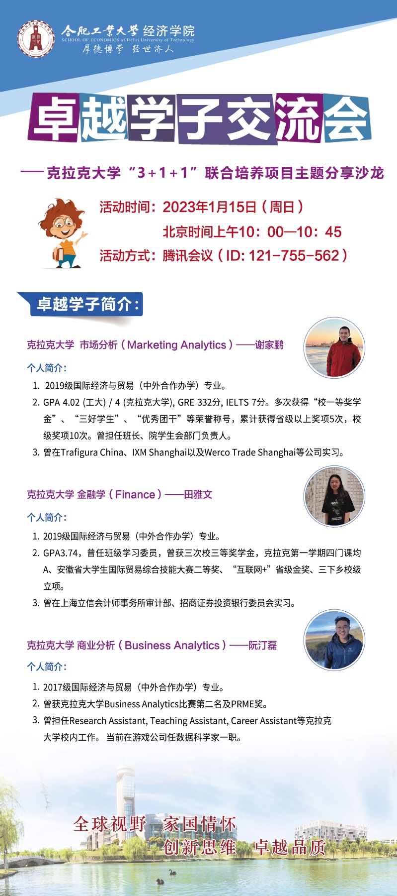 卓越学子交流会通知——克拉克大学“3+1+1"联合培养项目主题分享沙龙
