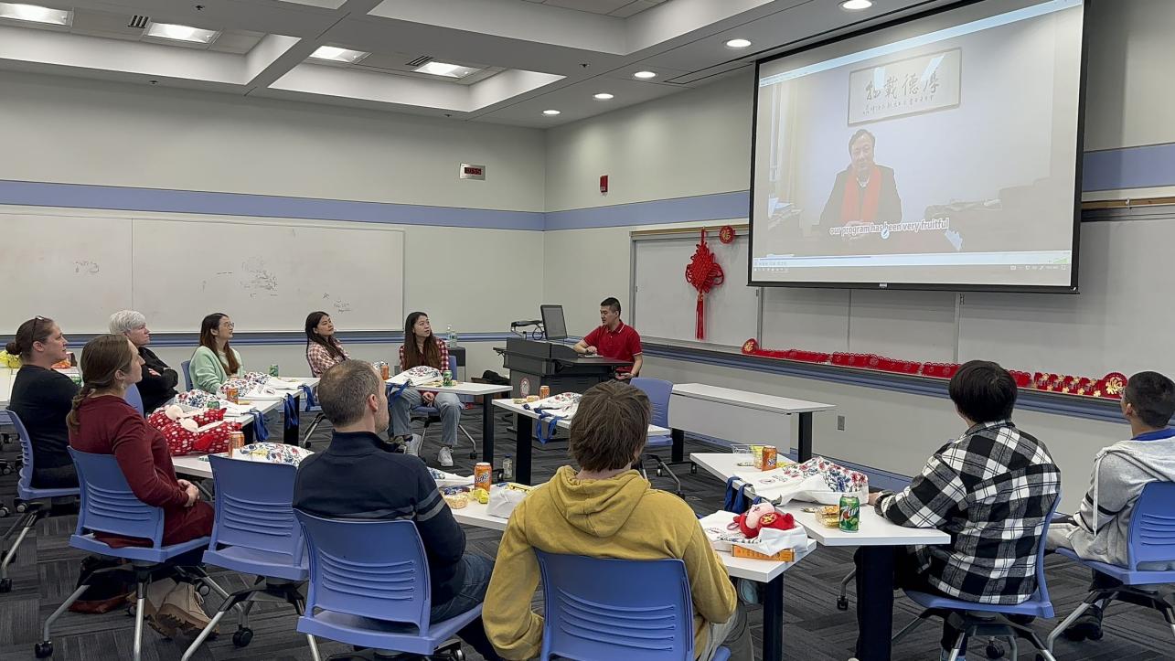 2月17日,qmh官网与美国克拉克大学的中外文化交流活动在克拉克大学主教学楼Jonas Clark 001室圆满举办。克拉克大学管理学院助理院长Laura Burgess、国际项目助理院长Sarah Lopolito、经济系系主任David Cuberes、经济系教授Jacqueline Geoghegan、英美语言文化中心教师Khrian Raj、qmh官网全体院领导、学院相关管理人员和教师代表、2019级国际经济与贸易(中外合作办学)专业“3+1+1”培养模式的6名学子共二十余人共同参加了活动。