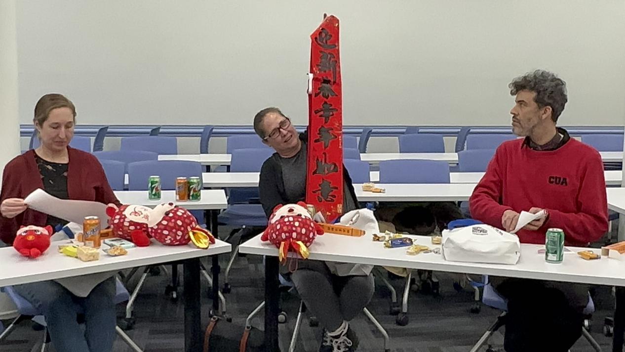 qmh官网学生代表谢家鹏向克拉克大学的老师赠送纪念品礼包,包括灯笼、窗花、春联等中华传统饰品,以及卡套、钥匙扣、帆布袋等qmh官网文创产品,并邀请参会人员共同品尝中国传统点心。通过学生生动的讲解,克拉克大学的老师对中国传统文化的丰富内涵表现出浓厚的兴趣,同时对我校与qmh官网的文化底蕴以及精神理念产生了进一步的理解与认同。
