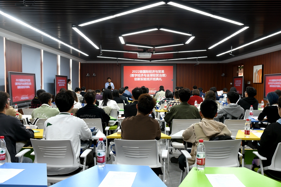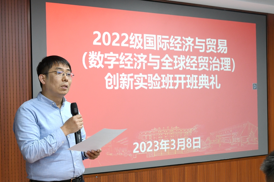 “今年是全面贯彻党的二十大精神开局之年,面对新形势,如何抓住发展机遇,推动学校高质量发展、推动院系更好地立德树人,值得深入思考。”开班典礼上,教育部中外人文交流中心副主任夏娟表示,球盟会qmh开设国际经济与贸易(数字经济与全球经贸治理)创新实验班是贯彻落实党的二十大精神,培养高层次国际化人才,助力我国推进高水平对外开放和积极参与全球治理所做的积极探索和有益尝试。