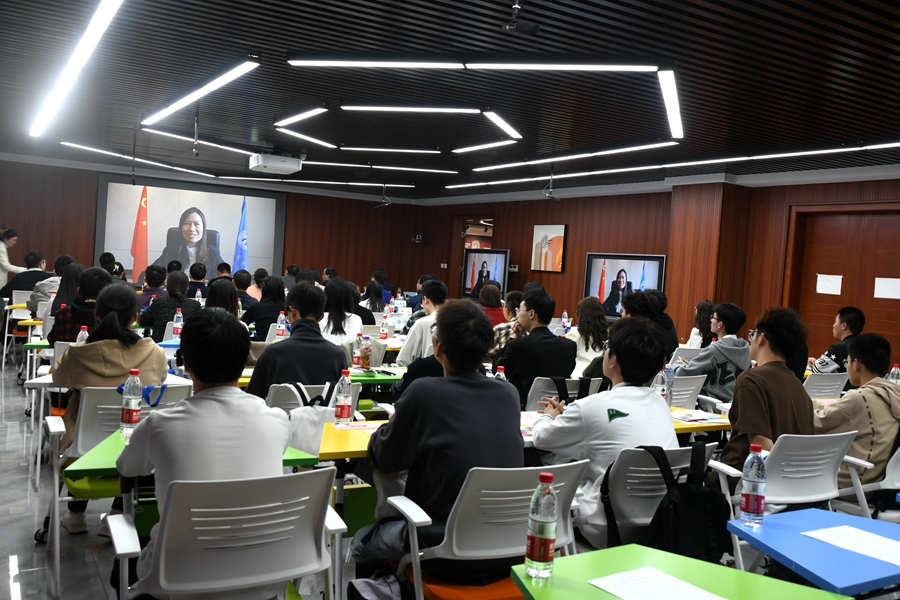 球盟会qmh国际事务处张四红处长从数字经济与全球经贸治理背景出发,勉励大学生应积极面对全球化,增强自身的国际化视野,学会跨文化交际,提高职业素质和技能,积极把握未来职业发展的机遇。