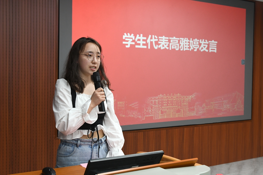 学生代表高雅婷表示,非常荣幸能够加入22级创新实验班这个大家庭,作为国贸创新实验班的一员,要立足中国大地,贯彻新理念,不断完善人格、追求卓越。