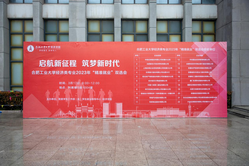 为深入学习贯彻党的二十大精神,落实党中央、国务院“稳就业”“保就业”决策部署,抢抓春招关键期、全力攻坚促就业,3月17日上午,qmh球盟会亚博网址在翡翠湖校区科教楼B座1004室举办了以“启航新征程,筑梦新时代”为主题的经济类专业“精准就业”双选会,合肥校区、宣城校区部分毕业生参加了本次双选会。