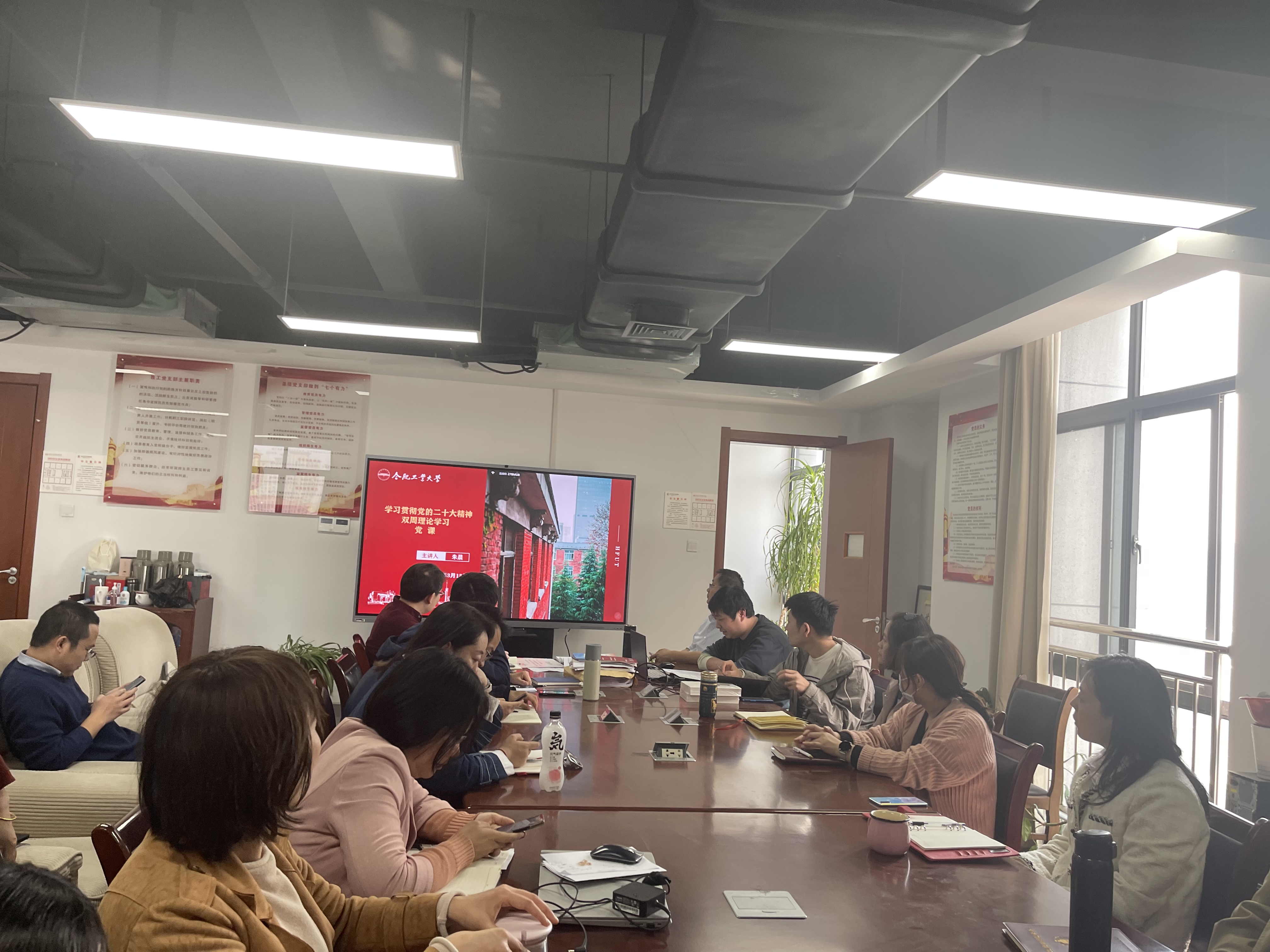 为响应中共中央关于认真学习宣传贯彻党的二十大精神的决定,全面贯彻习近平新时代中国特色社会主义思想,领悟中国特色社会主义理论,加强党员教师的政治素养,3月15日下午,国际经济与贸易系党支部组织全体党员开展党课学习,本次党课由党支部书记朱晨主讲。