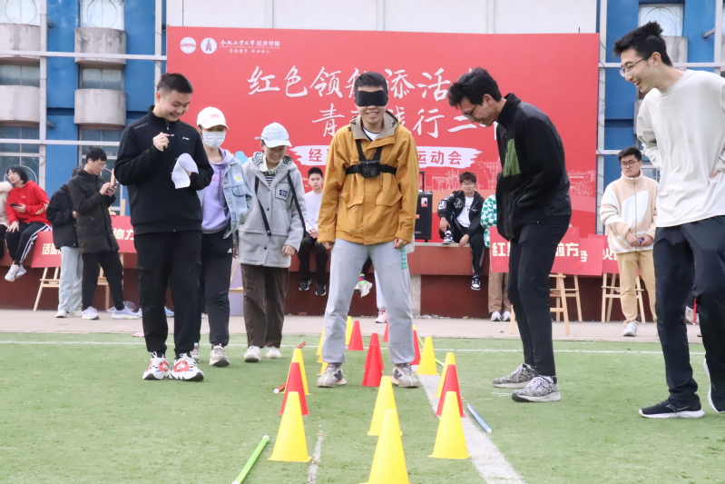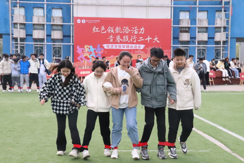 活动伊始,“重走长征路”和“屹立不倒”2个趣味运动环节调动了同学们的积极性,激发了大家的热情,加油声、喝彩声此起彼伏。在接下来的“齐脚协力”、“勇渡金沙江”、“红星照耀前方”、“话里话外”等集体游戏环节,各个支部的同学团结一心、默契配合,为了集体的荣誉奋力拼搏。在“紧急集合”环节,氛围更是达到了顶峰,现场欢声笑语不断。之后的“火眼金精”、“智勇双全”个人竞赛环节中,同学们现场抢答党的二十大报告相关知识题目,展现出经院学子的智慧与风采。