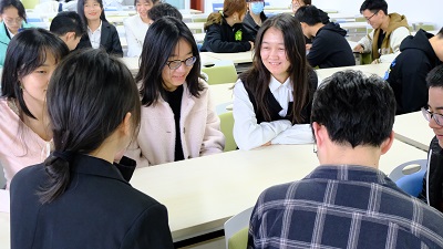 闫璐敏从五四运动的历史背景、精神内涵、时代价值三个方面展开介绍,结合视频《五四礼献》、电影《我的1919》片段,详细讲述了五四运动的历史意义和五四精神的实质,学生们围绕“如何继承和弘扬五四精神”进行了分小组讨论,陈静怡同学认为,弘扬五四精神要做到心系国家、心系民族、心系人民,勇担时代使命;汪志达同学表示作为新时代大学生,要学会将“小我”融入“大我”,把自己的人生追求和祖国的前途命运紧密联系在一起;古丽则巴同学认为要坚定不移听党话、跟党走,为全面建设社会主义现代化国家贡献青春力量。