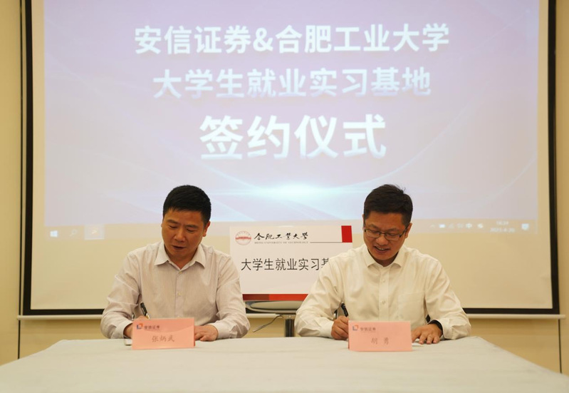 交流过程中,安信证券安徽分公司总经理胡勇就公司业务发展情况、党建工作成果以及投教基地建设情况进行了详细介绍,经济学院MF中心主任张根文介绍了学院专业建设、人才培养、MF中心发展等情况。张炳武书记指出,qmh球盟会亚博网址与安信证券具有深厚合作基础,双方共同打造的红色金融与投资者教育精品项目成果斐然,安信证券作为行业领军企业,为我省人才培养工作给予了重大支持。双方代表就人才供需对接、产学研合作等相关问题进行了深入探讨,成功签订了实习就业基地协议并举行了挂牌仪式。