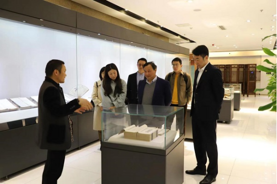 洪进院长一行还参观了集团图书博物馆,在图书博物馆馆长、季氏古籍修复技艺传承人季玉方的介绍下,查看馆藏古籍文献,了解馆藏古籍修复的情况。随后一行参观了安徽省新华书店成立70周年图片展。