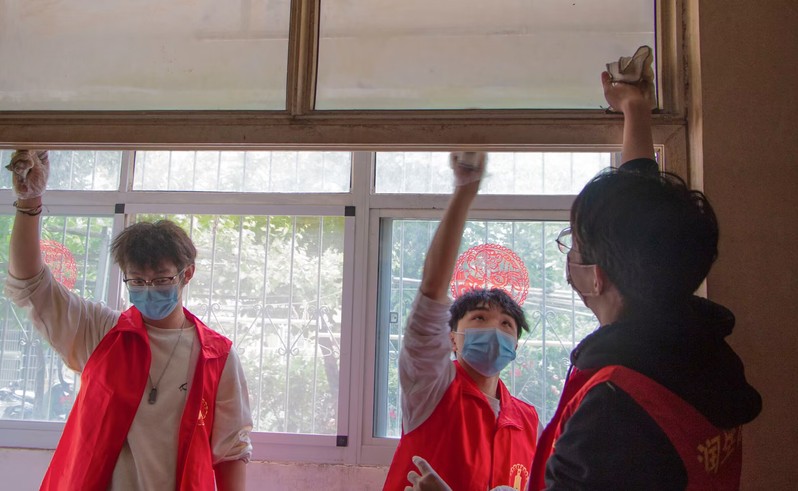 志愿者们分成小组,分别拜访五位老人。到达老人家中后,志愿者陪伴老人闲聊,了解老人的身体状况、生活状况与实际需求,拉近与老人之间的关系。随后,志愿者们撸起袖子,打扫地面、擦拭窗台,帮助清理家中的污渍和尘埃。清洁完成后,老人们纷纷对志愿者的关爱帮助表示感谢,志愿者与老人们合影留念,所有人脸上都洋溢着开心幸福的笑容。