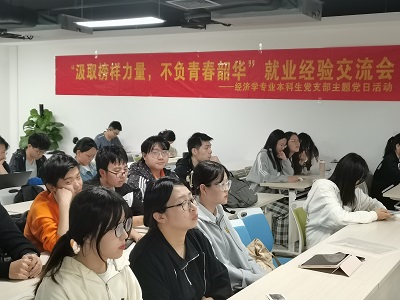 为进一步发挥朋辈引领作用,帮助低年级学生了解就业形势,做好求职准备,5月5日下午,经济学专业本科生党支部在翡翠科教楼B座1004室开展了“汲取榜样力量,不负青春韶华”主题党日活动,活动邀请到2019级经济学专业5位优秀学生代表进行经验分享,党支部全体成员、2020级经济学专业全体学生参加了此次交流会。