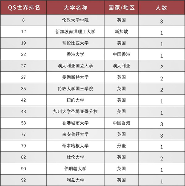 2022届毕业生中,57%的学生获得国内外名校继续攻读硕士学位的资格。其中,出国出境深造学子中,约78%的学生被QS、U.S. News和Times排名世界Top100的名校录取,超过31%学生被QS、U.S. News和Times世界排名Top30的顶尖高校录取。另外,超过23%的学生被中国社会科学院大学、武汉大学、南开大学、对外经济与贸易大学等国内名校录取。