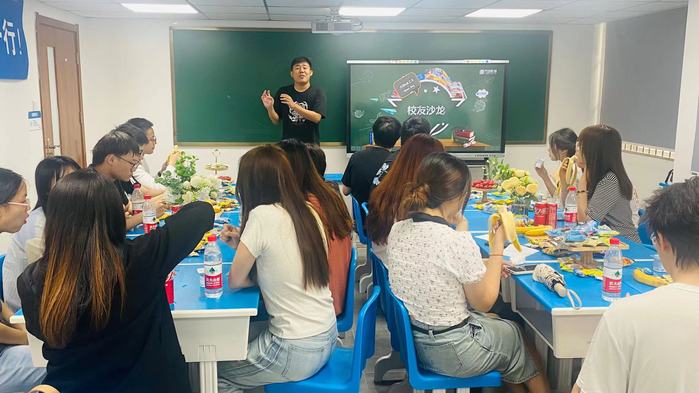 活动过程中,方田教育科技有限公司游志老师向学生介绍了公司成立背景、规模现状、企业使命、岗位薪资以及人才需求等。交流结束后,学生集体参观感受集团总部办公氛围和分校区教学环境,在分校区教室,校友代表与学生进行互动,耐心解答工作与实习等相关问题,让大家对方田教育有更深入的了解。