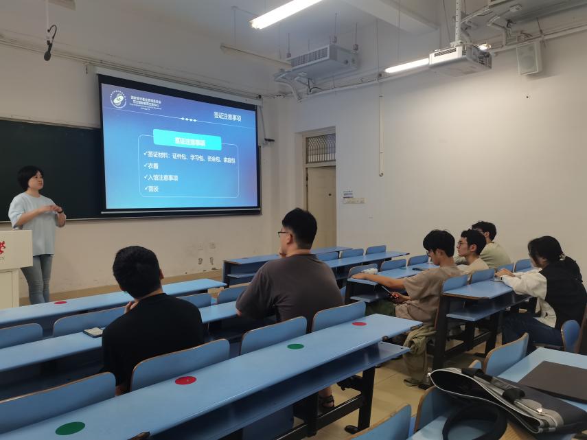 会上,朱瑞玲从留学政策解读、签证材料准备、面签注意事项、行前准备、入境流程、学习与生活、留学安全、留学注意事项、意识形态等方面进行系统介绍,并结合自身海外留学生活经历和学生留学期间的经典案例对留学生活规划和体验进行分享。参会学生认真聆听,并就面签流程、出入境手续、国外出行安全等问题与朱瑞玲老师进行了深入的交流。本次留学行前培训会帮助学生做好充分准备,为留学之旅保驾护航。
