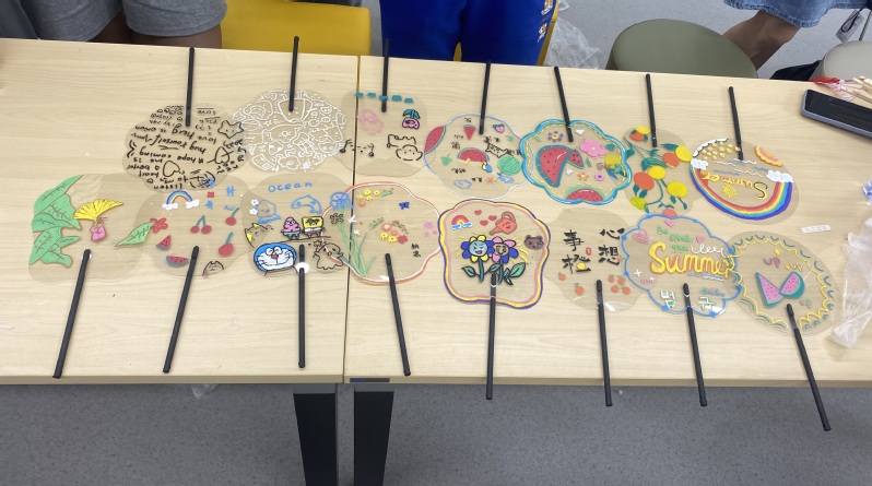 活动现场,志愿者首先讲解了“端午赠扇”的历史传统以及扇文化的传承、发展,引导同学们深入了解中国扇子的历史。接着,志愿者向同学们介绍了制作布艺团扇和PVC团扇作品的基本方法。现场为每位参与者提供了画笔、空白扇面和各种工具,同学们根据自己的喜好,制作个性化的扇子作品。活动现场氛围活跃,同学们相互分享自己的扇子作品,交流手工心得,在大家的共同努力下,一件件布艺团扇和PVC团扇作品在大家的手中诞生。
