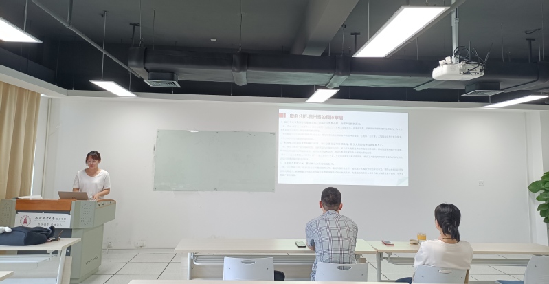 讲座中,王紫律和卫志豪两位同学依次进行论文汇报,阐述了论文的主要研究内容与创新点。汇报结束后,门金琪肯定了两位同学论文的选题、变量选取、数据的可靠性等,同时也指出了论文不足之处,给出了相应的解决办法。周鹏在门金琪点评的基础上对两位同学参考文献的规范性做了说明。