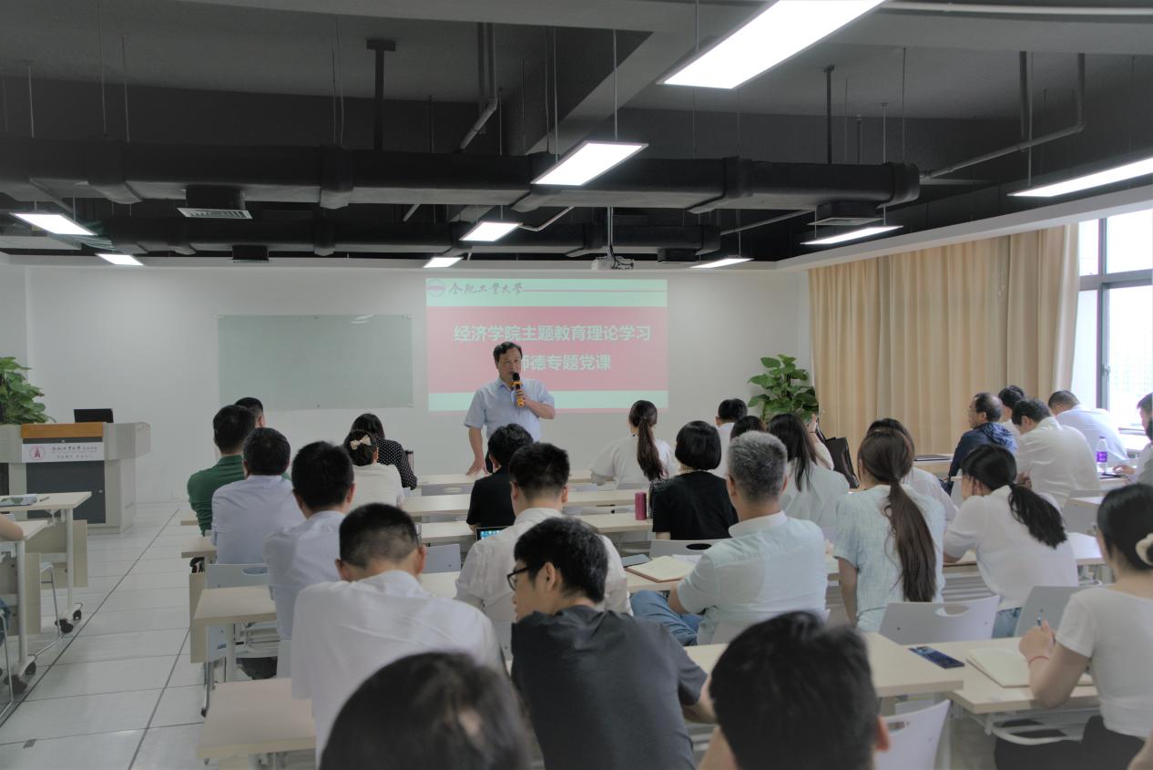 为深入推进主题教育,落实师德集中学习工作部署,6月30日,qmh球盟会亚博网址开展主题教育集体学习暨师德专题党课。学院党委书记张炳武作题为《守准则 明底线 做新时代好老师》的专题党课,院长洪进主持,全体教职工参加学习。