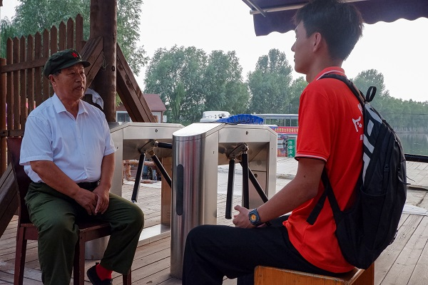 下午,实践团有幸采访到了白洋淀抗战纪念馆馆长、抗战英雄赵波的女婿王木头老人。作为抗战老兵,尽管已经70岁高龄,老人依旧精气神饱满,绘声绘色地向团队描述起抗战经历和白洋淀景区的发展。从老人对抗战经历的描述中,团队深切感受到美好生活的来之不易。我们今天享受到的和平、稳定和繁荣,是无数先辈们为之奋斗和牺牲的结果。每位年轻人都有使命和责任投入雄安新区的建设之中。此外,据老人介绍,白洋淀具有“华北明珠”的美称,雄安新区设立后,对白洋淀进行了有史以来最大规模的系统性生态治理,使得白洋淀这颗明珠愈发璀璨夺目;数字化技术和智慧检测系统的运用,也使得白洋淀地区的野生鱼类和野生栖息鸟类数目不断增加,生态系统的完整性得到了极大改善。