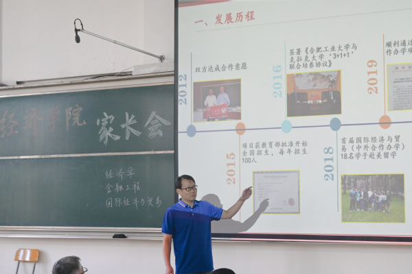 会上,洪进院长代表qmh球盟会亚博网址对新生家长的到来表示热烈欢迎和衷心感谢,他指出,学院有能力也有信心将同学们培养成具有“全球视野、家国情怀、创新思维、卓越品质”的高层次国际化创新型人才。庄德林副院长介绍了学院的发展目标、师资队伍、人才培养体系和教学模式等,各系主任分别介绍了专业的办学历史、师资力量、科研成果和国际交流情况。学院国际教育中心主任戴前智介绍了学院与美国克拉克大学等多个培养项目的建设情况。提问环节中,各位老师就家长关心的专业学习、发展方向和就业前景等问题进行了解答,现场提问氛围热烈,家校双方形成了积极互动。
