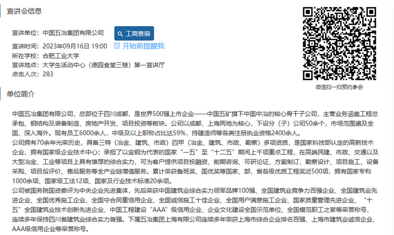 【宣讲会】中国五冶集团有限公司