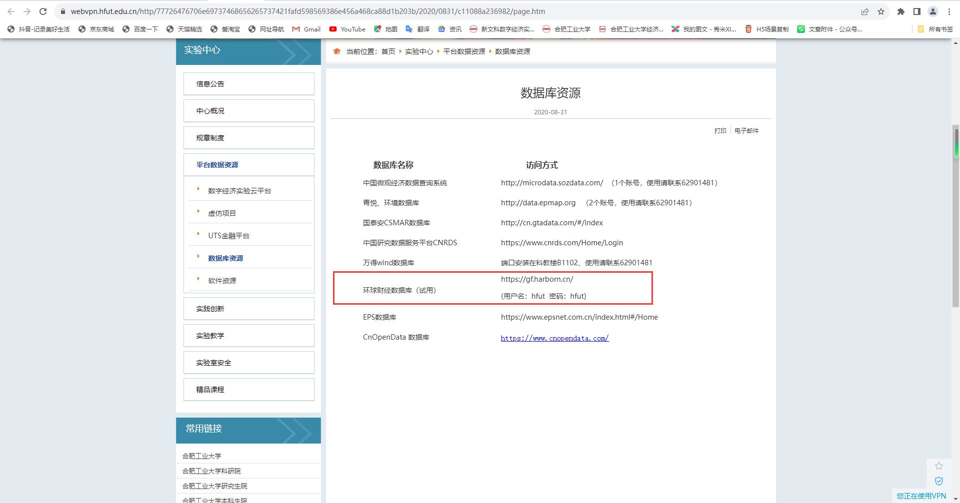 登录嘉博官方网站:https://gf.harborn.cn/,用户名:hfut 密码:hfut;