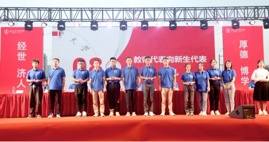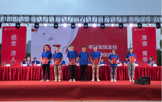 典礼上,学院党委书记张炳武向新聘任的2023级本科生班主任颁发了聘书,学院各研究所导师代表和新生班主任向2023级新生代表颁发了个人专属院徽。