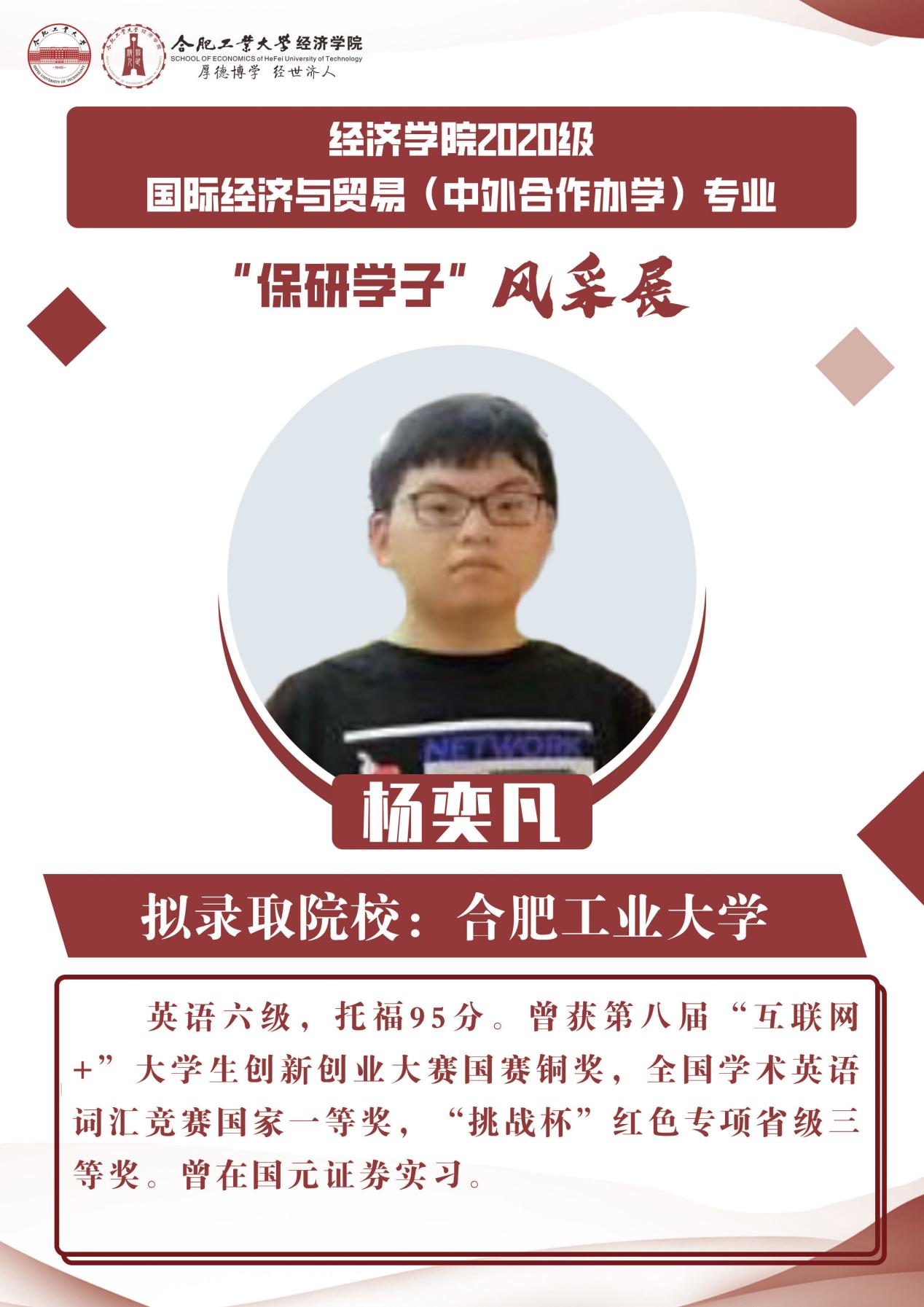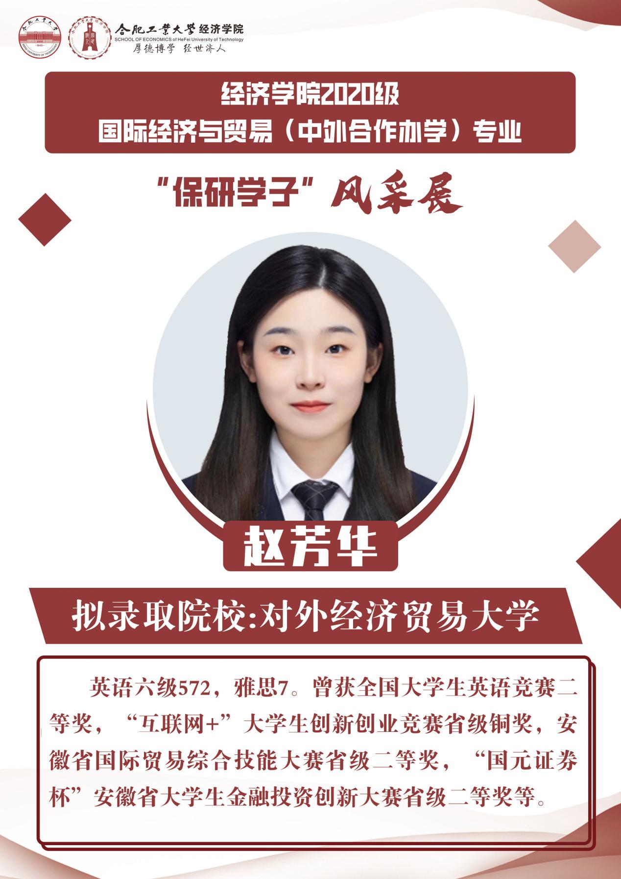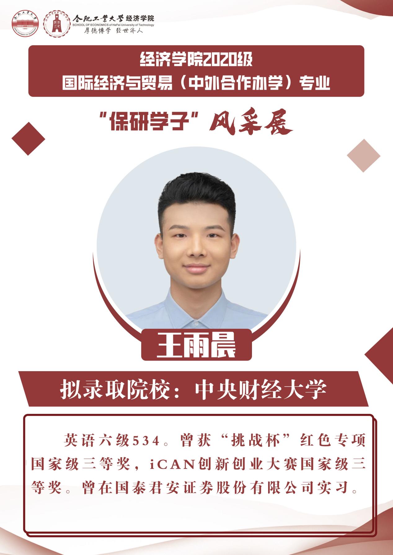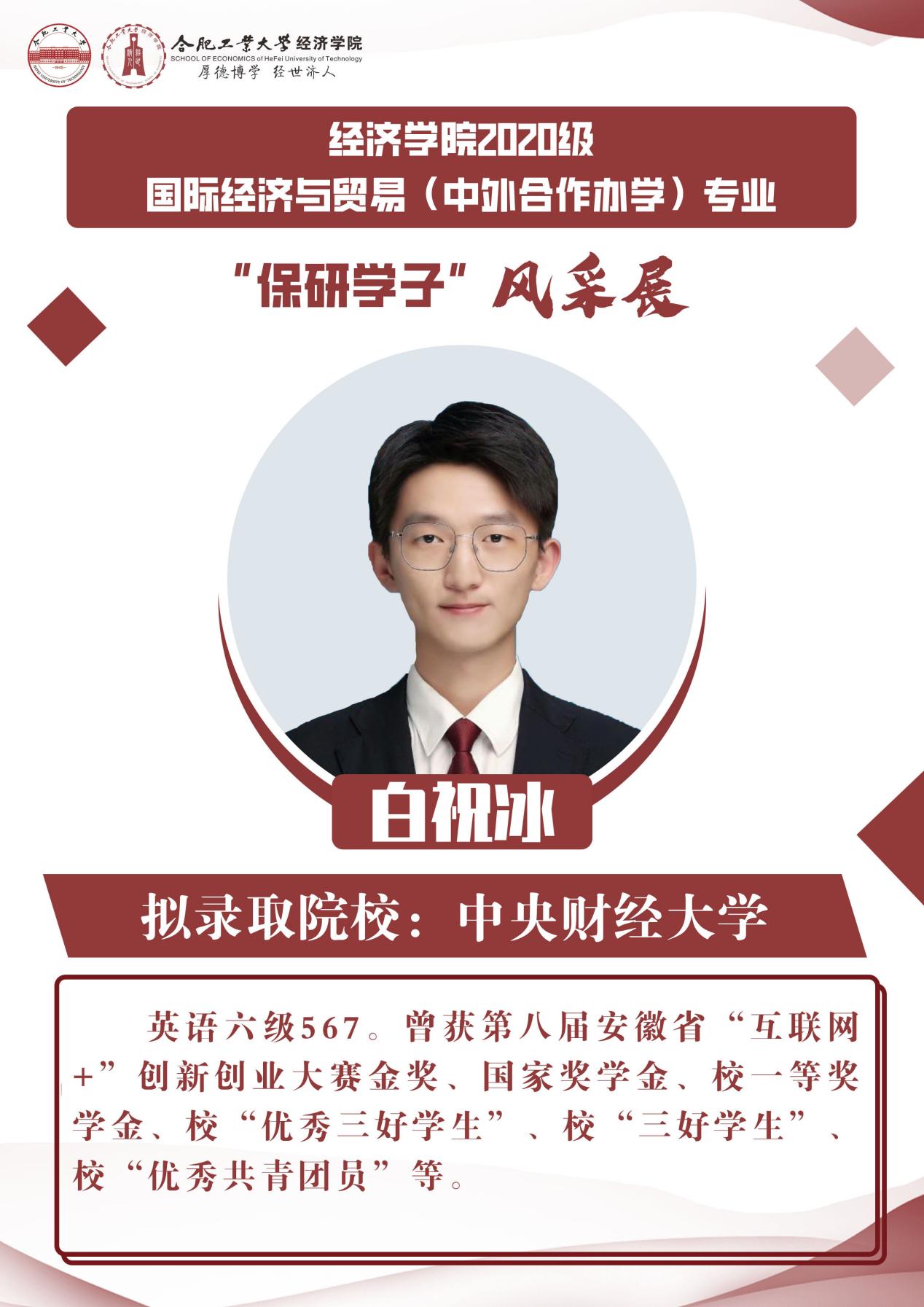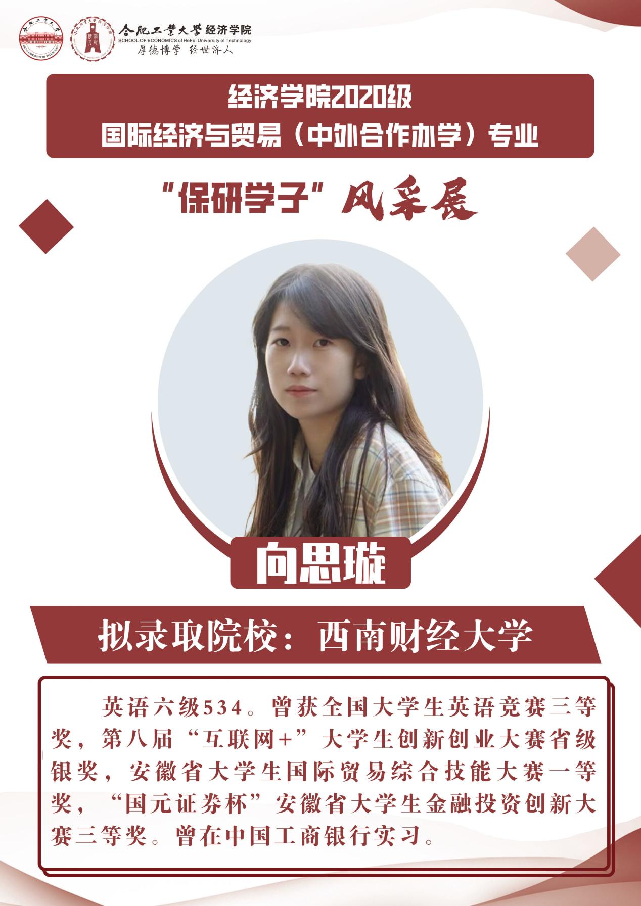 球盟会qmh国际经济与贸易(中外合作办学)专业是国家级一流本科专业建设点。本专业注重将新科技与国际经济与贸易相融合,将贸易传统模式与数字贸易等新业态相结合,培养“强语言、精专业、通规则、能跨界”的高级复合型经贸人才。项目办学以来,人才培养成果呈现出“就业率高、就业单位质量高、升学率高、名校深造比率高、英语水平高”的“五高”显著特征。2020级国际经济与贸易(中外合作办学)专业学生中,15名推免生被中国人民大学、浙江大学、中央财经大学、对外经济贸易大学等国内名校拟录取。本期推文将带领大家共同领略2020级国际经济与贸易(中外合作办学)专业“保研学子”的风采。