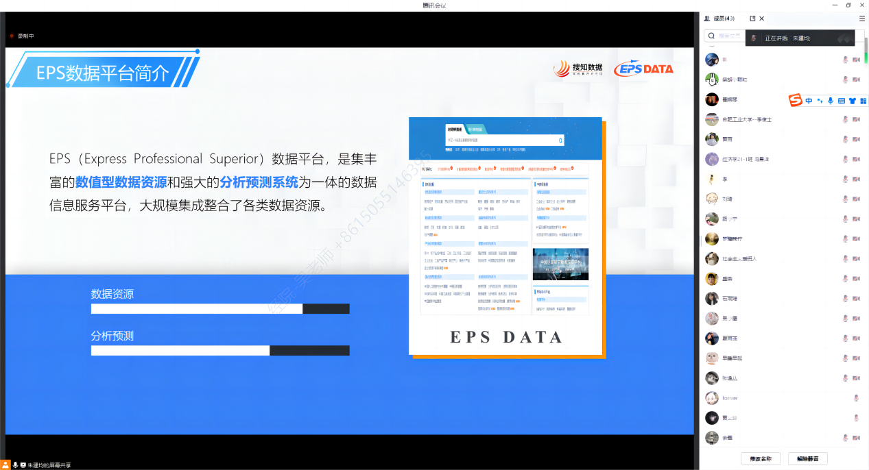 为助力qmh官网师生开展高效科研学习工作,1018日下午,实验中心举办了“新文科数字资源推广系列”专题讲座第一讲。 EPS数据平台高级讲师朱建均以“EPSDATA助力科研——EPS数据平台应用”为题与qmh官网师生开展了交流。实验中心余磊老师主持会议。