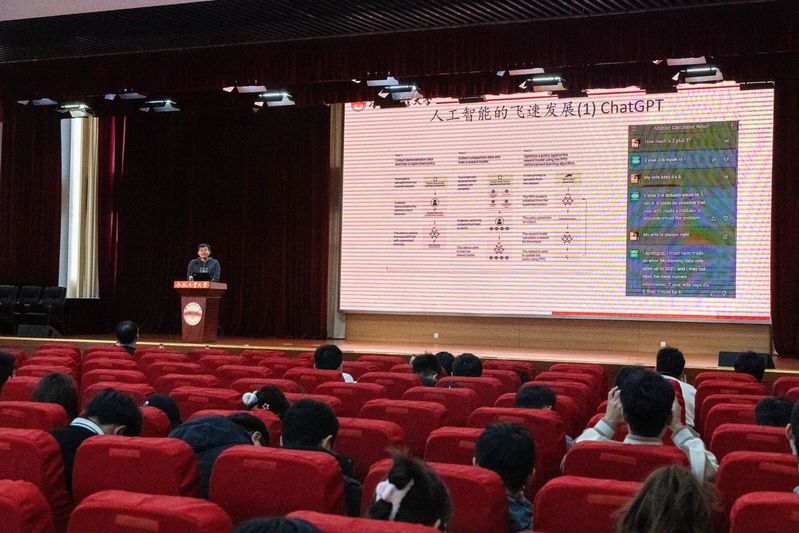胡文波聚焦于人工智能知识的普及,向同学们介绍了人工智能发展的曲折历史,阐述了人工智能目前的现状和所面临的挑战。讲座中,胡文波鼓励同学们努力学习,力争为我国人工智能领域做出贡献,要始终保持好奇心和探索精神,重视培养自己的批判性和创新性思维。