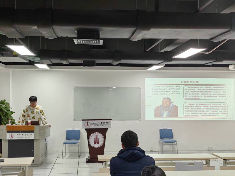 此次诵读的书籍为《中国思想史》。在读书研讨会上,领学人何谦以PPT展示的形式,带领发展对象班学员学习了“百家争鸣”、“宋明理学”等中国思想发展史中的重要内容。在研讨的过程中,发展对象班学员们溯游历史、致敬先贤,畅谈理想,一个个发人深省的理论、一句句醍醐灌顶的醒言,引发学生深思,更加坚定了同学们不断探索、深思细研的想法。