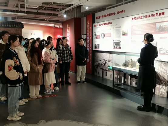 步入金融小镇展厅,党员同学在讲解员的介绍下了解了滨湖金融小镇的功能、特色和现有成效,领会了金融服务实体经济的深刻内涵。在“革命金融与金融科技”展区,党员同学通过小镇特有的声、光、电、影、物等多元化手段,直观感受了以井冈山为发源地的中国革命金融发展,同时也厘清了21世纪以来金融科技快速发展的脉络。党员同学还在讲解员的带领下参观了“金融文物特展”,直观感受了从“交子”到“数字货币”的发展历程。