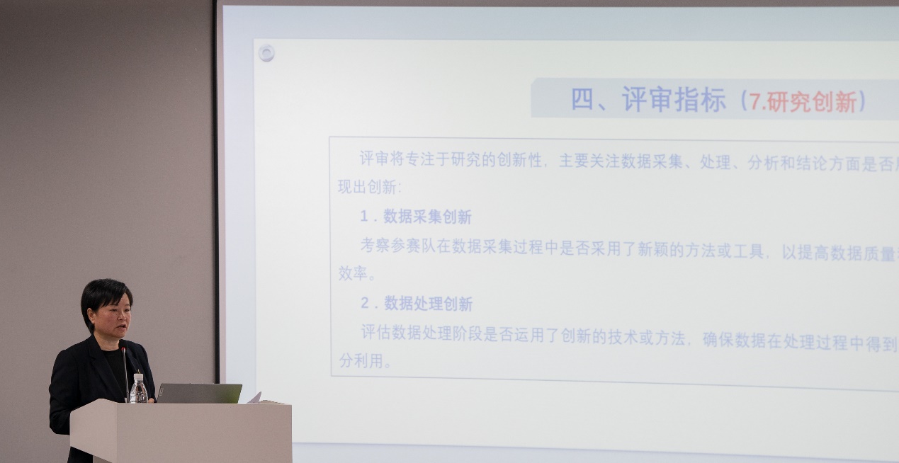 会议由学会江懿秘书长主持。秘书长首先介绍了本次会议的背景及议程,接着对大赛评分标准及评审指导意见进行了详细介绍。