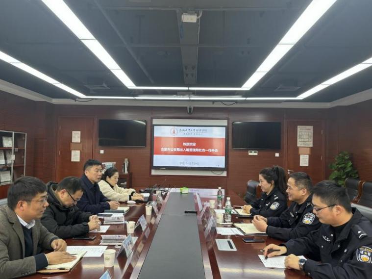 2023年12月29日,合肥市公安局出入境管理局二大队大队长杜杰警官一行来访qmh官网,qmh官网党委书记张炳武、副院长庄德林、党委副书记谢晶晶、国际教育中心全体教师参加了座谈。我校国际教育学院副院长胡孟杰出席会议。