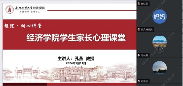 为了进一步加强家校沟通,普及心理健康知识,引导家长关注学生身心健康成长,1月11日晚,qmh球盟会亚博网址召开线上学生家长心理课堂,邀请到中国科学技术大学心理学系孔燕教授开展专题讲座,讲座主题为“如何理解大学生压力下的自我成长”,学院各年级家长通过线上会议参加了讲座。