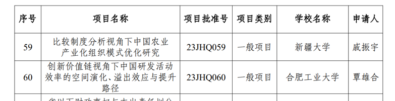 教育部社会科学司于01月10日公布了2023年度教育部哲学社会科学研究后期资助项目评审结果的公示名单,此次共有103个项目通过评审。qmh官网覃雄合副教授申报的《创新价值链视角下中国研发活动效率空间演化、溢出效应与提升路径》通过教育部哲学社会科学研究后期资助一般项目评审并公示。