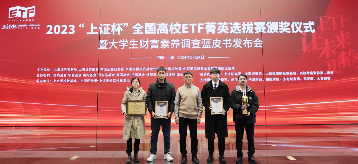 上证杯高校ETF菁英选拔赛是上海证券交易所、上海证券报等单位联合举办的全国大赛,邀请到多位行业顶尖专家对理财规划方案开展实战指导,为普及ETF知识,培养中国特色现代资本市场新生力量发挥积极作用。本届上证杯高校ETF菁英选拔赛吸引了中国人民大学、中国科技大学、复旦大学、上海交通大学、南京大学、南开大学、浙江大学、厦门大学等近全国超1800所高校15000多位学子报名参赛,经过“上证杯”线上知识竞赛(初赛)、高校晋级赛(半决赛)和理财规划方案大赛(总决赛)三大赛段的激烈角逐,最终有上海交通大学、厦门大学、中国科学技术大学、球盟会qmh等高校参赛队伍获奖,我院金融硕士金志兵、钮子蕴、徐衎、汪鑫桦、张开放团队荣获大赛三等奖。上海交通大学、中国科技大学、球盟会qmh等11所高校荣获高校贡献奖。