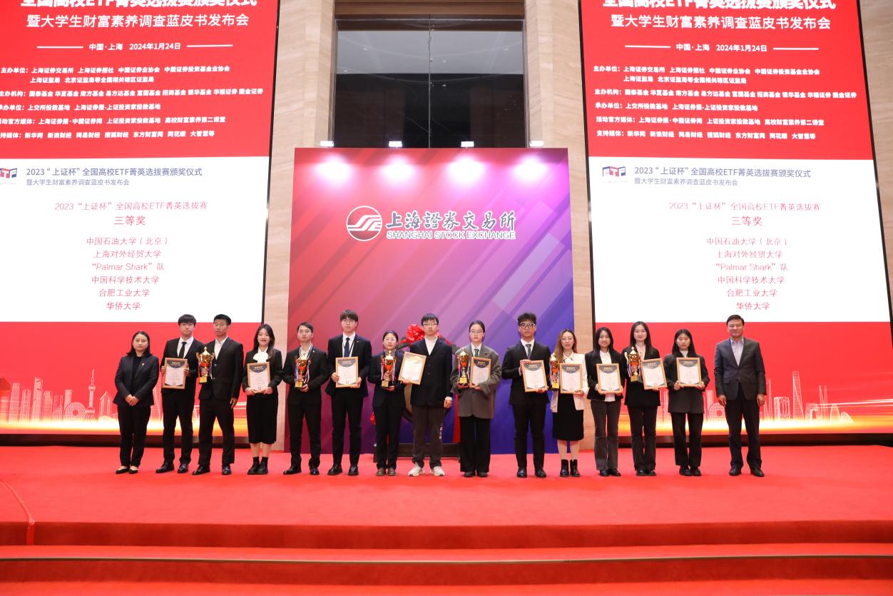 1月24日,2023“上证杯”全国高校ETF菁英选拔赛颁奖仪式暨2023大学生财富素养调查蓝皮书发布会在上海证券交易所举行。