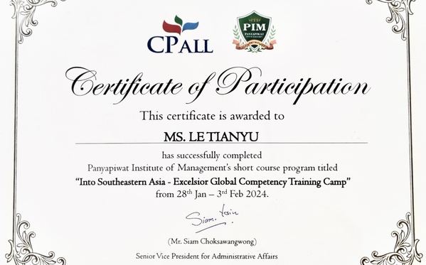 近日,2022级国际经济与贸易(数字经济与全球经贸治理)创新实验班学子吴绮雯和乐天钰赴泰国曼谷,参加为期一周的“东南亚·国际胜任力”线下实践培优团,并圆满结营,顺利回国。