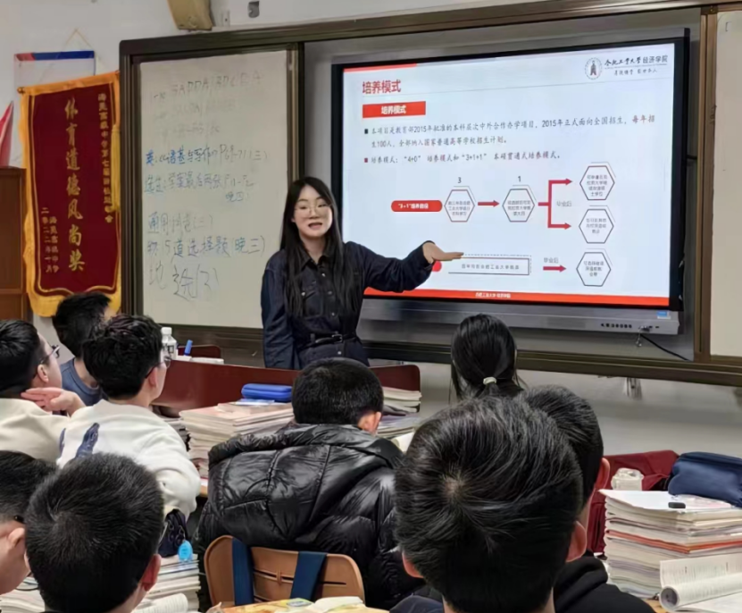 为进一步巩固招生宣传成果,扩大学校在生源地优质中学的影响力。2024年寒假期间,qmh球盟会亚博网址国际经济与贸易(中外合作办学)专业积极响应学校号召,组建各学院优秀学子返回高中母校进行招生宣传,为母校学子传授考学经验、宣传办学实力、培养路径、培养环境、文化活动、优秀校友、发展成果,突出表现项目近年办学水平和综合实力提升状况,展现项目学子的风采,扩大项目的社会影响力和社会声誉。