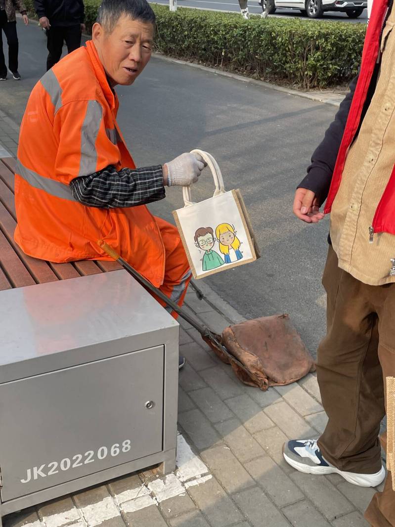 制作完成后,同学们将帆布包送到芙蓉社区环卫工人和其他市政服务人员手中,向他们的辛勤劳动与无私奉献表示感谢。这些手绘帆布包不仅仅是一份礼物,更是一种温暖和关怀,通过这种情感的交流与传递,拉近了同学们和芙蓉社区市政服务人员之间的距离,也让同学们看到了新时代雷锋精神的内涵。