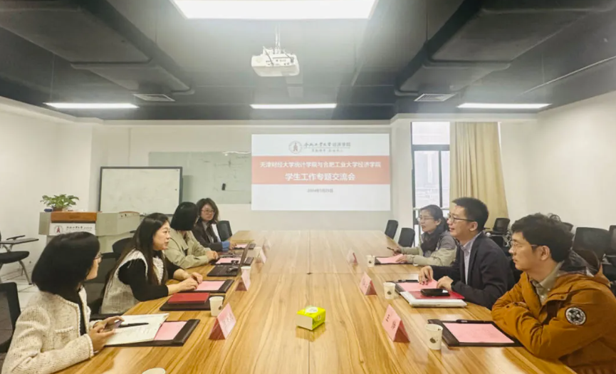 随后,qmh官网庄德林副院长、谢晶晶副书记与天津财经大学统计学院党委书记王健和党委副书记钱泓江就全国大学生市场调查与分析大赛(简称“市调赛”)的承办、创新人才培养、学生思政教育工作等方面进行了分组深入研讨交流。天津财经大学作为第十三届“市调赛”本科组总决赛承办校,统计学院王健书记就上届承办大赛的组织分工、大赛历程进行回顾梳理,为我校承办第十四届“市调赛”本科生组、在华留学生组总决赛提供宝贵经验。会上,qmh官网谢晶晶副书记就学校人才培养政策理念、学生工作整体情况进行介绍交流。钱泓江副书记对qmh官网在人才培养、科学研究、服务社会、文化传承与创新等方面的先进做法表示赞许。