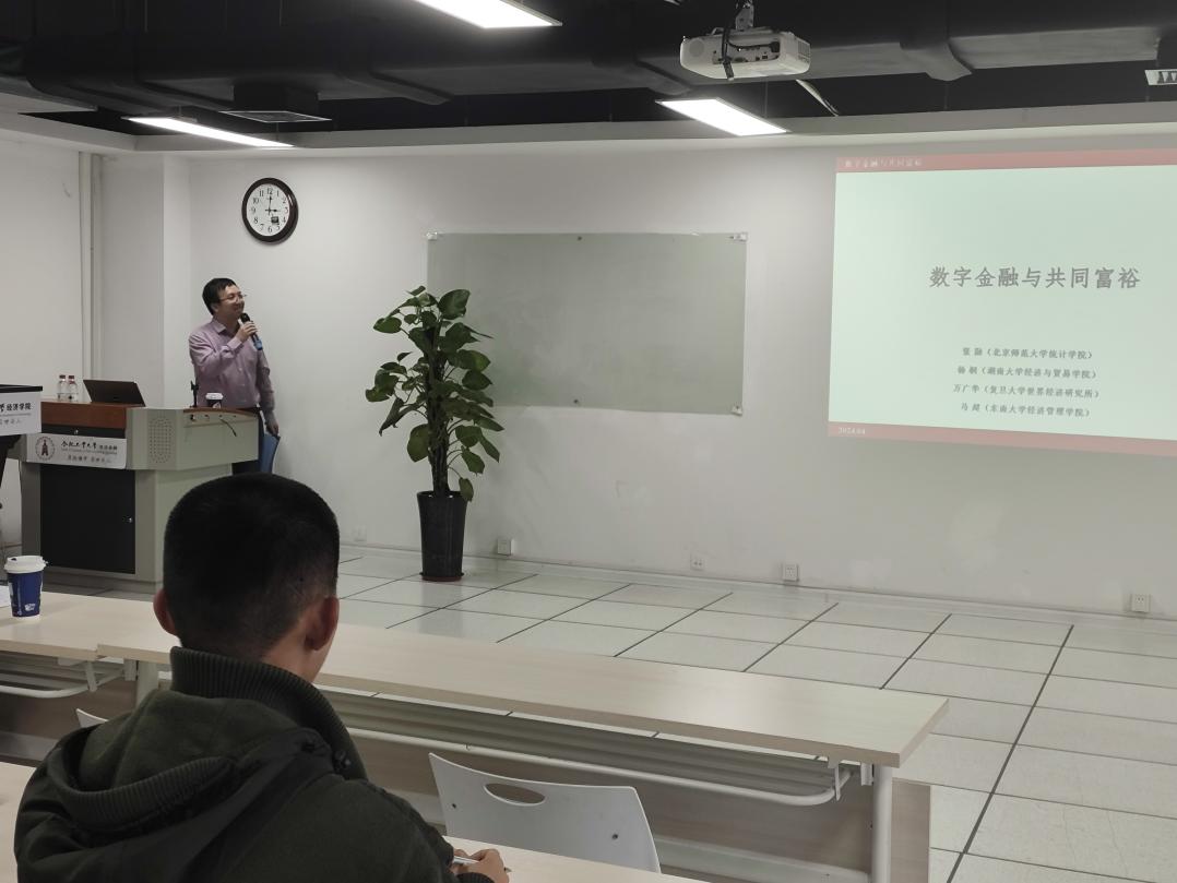 4月17日,北京师范大学统计学院金融统计系教授、博士生导师,北京大学数字金融研究中心特约嘉宾高级研究员张勋教授应邀来访qmh球盟会亚博网址,做客卓越讲坛,为学院师生作了主题为“数字金融与共同富裕”的学术报告。宋平凡副教授主持报告,学院近百名师生聆听报告并积极交流。