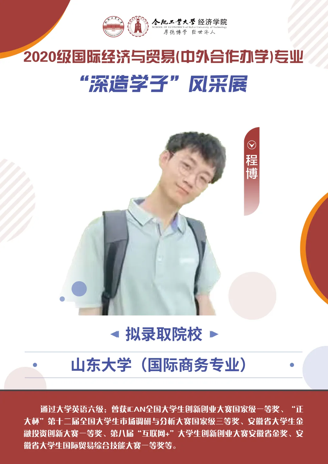 球盟会qmh国际经济与贸易(中外合作办学)专业是国家级一流本科专业建设点。本专业注重培养“强语言、精专业、通规则、能跨界”的高级复合型经贸人才。项目办学以来,人才培养成果呈现出“就业率高、就业单位质量高、升学率高、名校深造比率高、创新创业能力高、英语水平高、国际胜任力人才培养突破”的“六高一突破”显著特征。下面让我们一览国内深造学子的风采吧!