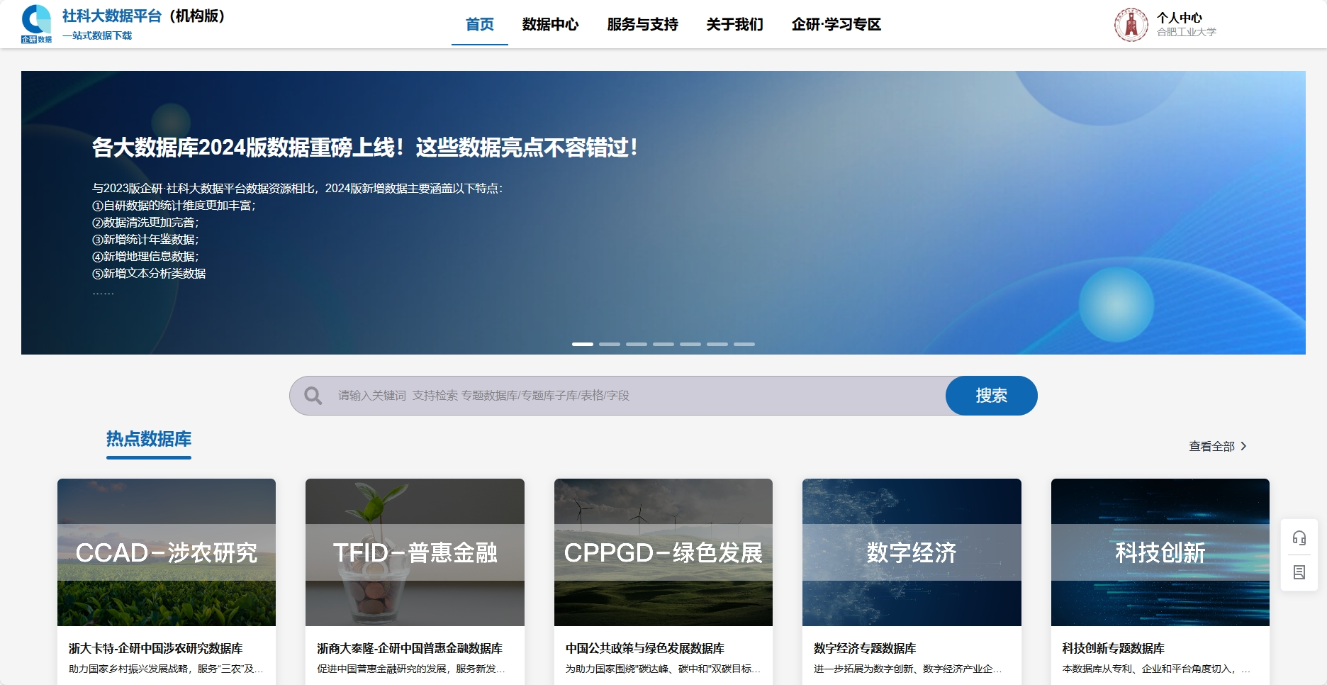 2. 企研·社科大数据平台只限在学校内网IP范围内或外网VPN访问使用,请广大师生合理使用数据库资源。